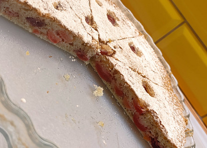 Navrch koláče můžeme použít zavařená jablka - smícháme je s rozinkami, skořicí a kakaem, promícháme a poklademe na těsto. Lze použít také tvaroh, který střídavě s těstem dáváte do formy a pak navzájem, třeba špejlí, promícháte.