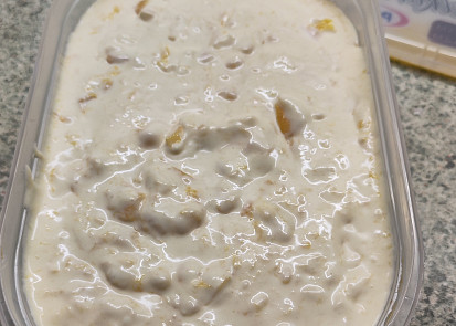 Tentokrát jsem zmrzlinovač nepoužila, bála jsem se, že by mango úplně rozšlehal a já jsem chtěla, aby ve zmrzlině zůstaly kousky