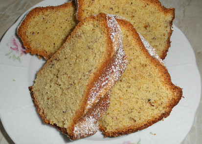 Troubu včas zapneme na 180 °C, a bábovkovou formu vymažeme tukem a vysypeme hrubou moukou.Vejce rozdělíme na bílky a žloutky. Z bílků vyšleháme tuhý sníh.Změklé máslo vyšleháme s cukry do světlé pěny. Postupně pak do ní zašleháme po jednom žloutky.V míse zvlášť smícháme polohrubou mouku, kypřicí prášek do pečiva a strouhané lískové oříšky. Tuto směs pak postupně vmícháme do vyšlehané máslové hmoty. Nakonec zlehka vmícháme také vyšlehaný sníh z bílků.Těsto urovnáme do připravené formy a upečeme v troubě vyhřáté na 180 °C přibližně 40-45 minut.Dobře upečenou bábovku vyjmeme z trouby, necháme chvíli vychladnout a poté ji vyklepneme z formy.Před podáváním bábovku pocukrujeme moučkovým cukrem.