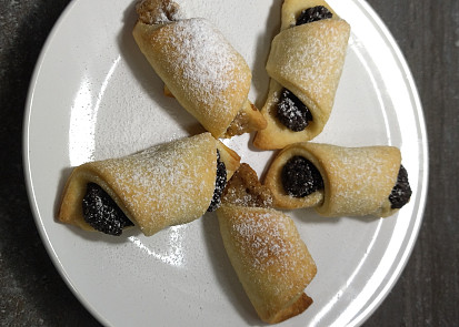 Nejprve nastrouháme máslo na hrubém struhadle.Mouku smícháme s kypřicím práškem. Přidáme nastrouhané máslo, sůl, smetanu, citronovou kůru a vypracujeme hladké těsto, které následně rozdělíme na 4 díly. Těsto necháme asi hodinku odpočinout v lednici.Troubu předehřejeme na 180 °C a plech vyložíme papírem na pečení.Pak rozválíme každý díl těsta do kruhu. Rádlem ho rozdělíme na osm trojúhelníků a naplníme libovolnou náplní. Vhodná je tvarohová náplň, avšak lze použít i tuhá povidla nebo náplň maková či ořechová. Marmeládu raději ne, může během pečení vytéct.Těsto s náplní zavineme do rohlíčků od jeho nejširší strany. Rohlíčky klademe na plech s papírem na pečení.Povrch rohlíčků před pečením potřeme rozšlehaným vajíčkem. Vložíme do předem vyhřáté trouby a pečeme na 180 °C asi 20 minut dozlatova.Hotové rohlíčky posypeme moučkovým cukrem.