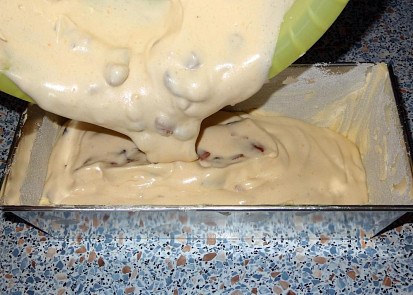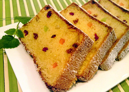 Formu vymažeme tukem a vysypeme hrubou moukou. Zapneme nahřívat troubu na 170 °C.Vejce rozdělíme na žloutky a bílky. Žloutky utřeme se změklou Herou, krupicovým a vanilkovým cukrem.Přidáme měkký tvaroh, mouku promíchanou s práškem do pečiva a citronovou kůrou.Rozinky a sušené ovoce nakrájíme na kostičky. Vlašské ořechy nasekáme nahrubo. Vmícháme spolu s kandovaným ovocem a pomerančovou kůrou do těsta.Pokud je hmota příliš hustá, přidáme trochu mléka. Nakonec zlehka vmícháme ušlehaný sníh z bílků.Těsto přendáme do připravené formy a vložíme do vyhřáté trouby. Pečeme při 170 °C asi 45-60 minut. Po upečení necháme vychladnout.Vychladlý chlebíček vyklopíme a posypeme moučkovým cukrem. Nakrájíme na řezy a podáváme.
