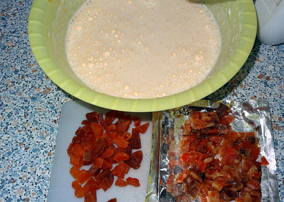 150 g kandovaného ovoce, kandované pomerančové kůry, vlašských ořechů, rozinek, sušeného ovoce (v poměru dle chuti)